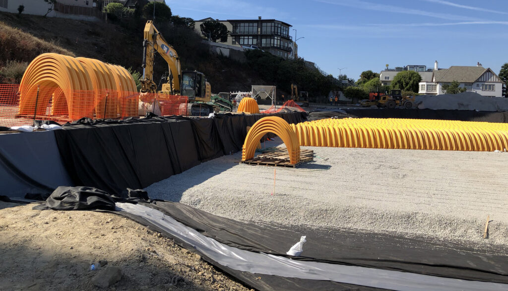 When considering installing an attenuation system beneath a building with parking on its lower levels, it is likely that the underlying soils have already been evaluated for suitability with respect to the structure’s foundation system and the required minimum bearing capacity. This means that there will be reasonable information and knowledge about the soil type and groundwater situation.